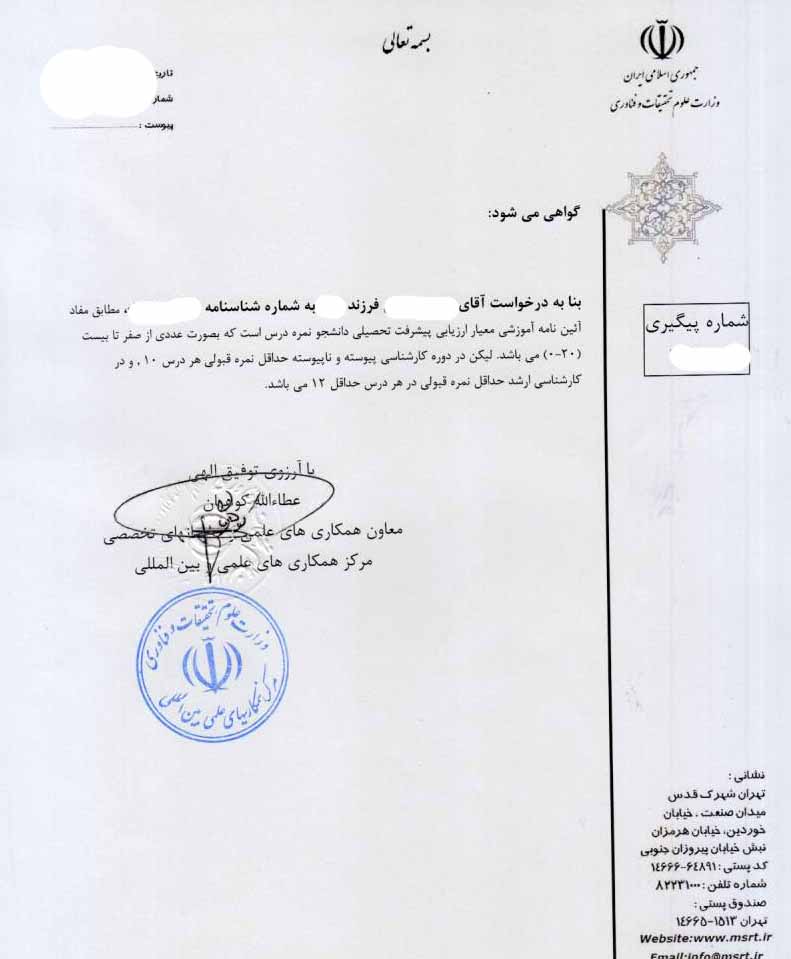 نحوه دریافت گواهی سیستم نمره دهی در ایران از وزارت علوم: